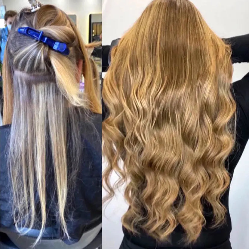 Our premium human hair extensions deliver seamless length, volume, and luxury. These stunning transformations from our salons and influencers showcase the flawless blend and natural feel.